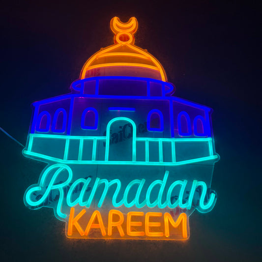 Ramadan Kareem in White Decorative Neon Window Lights.