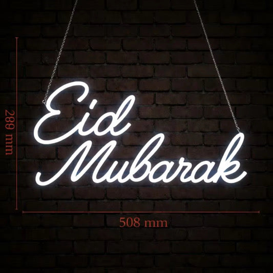 Eid Mubarak in White Decorative Neon Window Lights.