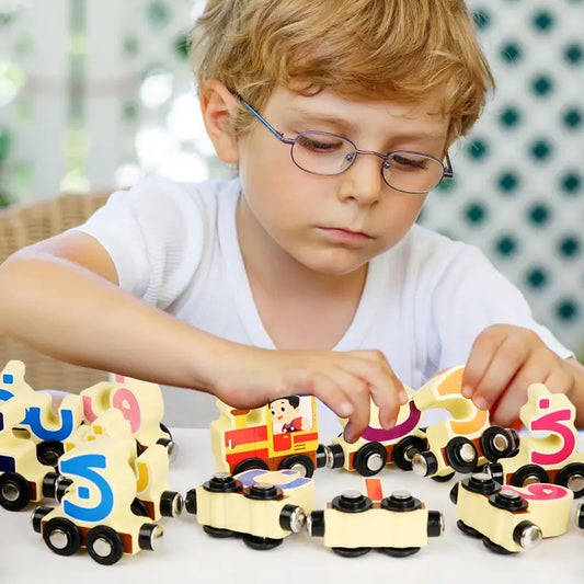 Arabic Alphabet Wooden magnetic Train Set in a Wooden Box.