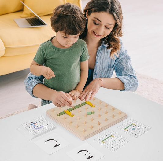 Montessori Educational Puzzle Toy with Wooden Geoboard and Flash Cards,Alphabet Skill Exercise.