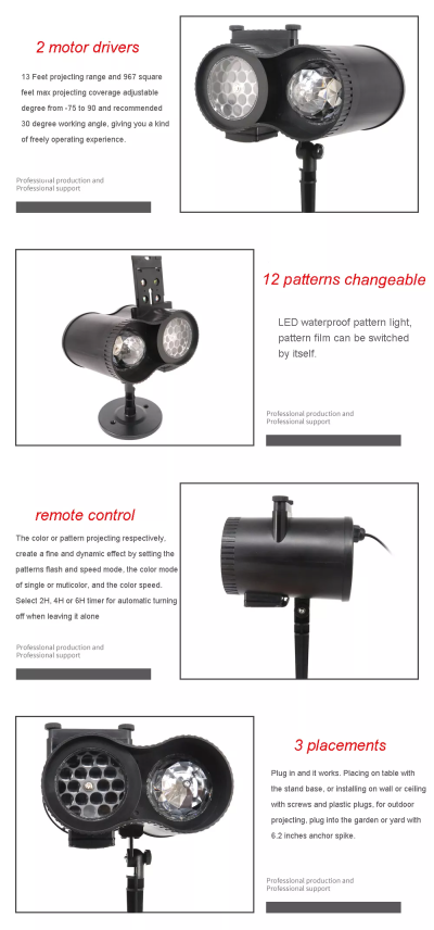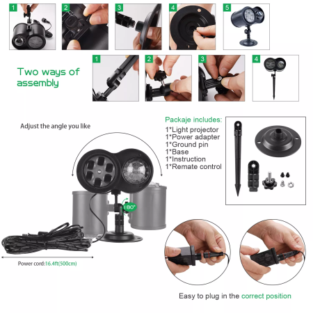 Indoor & Outdoor Holiday Projector Lights: The Ramadan/Eid light projector is perfect for yard decorations, and other occasion decoration, the projected pattern adds a festive feel to Ramadan/Eid. Note: If the projector is not a Ramadan/Eid pattern when received, you can change it by yourself. it comes with different slides. Double Projection Lens Design: Compared with traditional projection lights, our Holiday light projector have, 12 slide patterns, 2 projection lenses, and colors ocean wave ripple. You can choose the slide patterns or ocean wave effects according to your preference to create the atmosphere you want. Remote Control : The light projector outdoor is comes with a remote controller which can turn on/off and you can set single-color or multi-color mode, moving speed, flashing speed to create different effects. Note: the max remote distance is 32.8 ft, please use it within this range. Installation Modes: Comes with a long ground stake and round base that you can hang on the wall and project to the floor, table and ceiling, or place them on the floor to project to the ceiling and wall, or place them to project to the doors and house, add excitement to Ramadan/Eid Celebration. A great addition to Ramadan/Eid/Muslim house decorations and the perfect gift for family and friends. One Projector For All Year Muslim Holiday Occasions, Save Money: Muslim light projector outdoor/indoor has 12 slide patterns, suitable for Eid/Ramadan festivals, to meet your needs throughout the Celebration that you can put away at the end of the Holiday and use in the next festival. And it not only has no noise when used indoors, its waterproof design is suitable for use even in the rain, snow, or wet weather. (Note: the plug and vent of the product are not waterproof). |